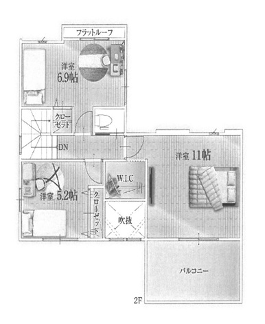 | 間取り内訳 | 1階LDK17畳1室 1階洋室5畳1室 2階洋室5.2畳1室 2階洋室6.9畳1室 2階洋室11畳1室 |